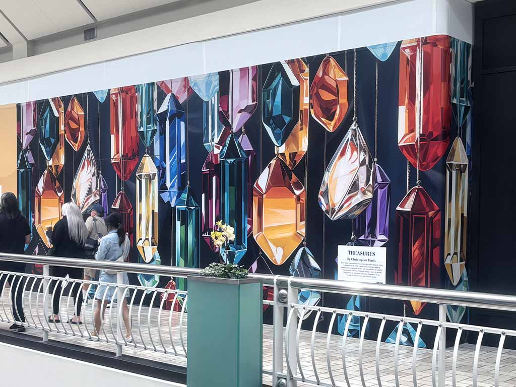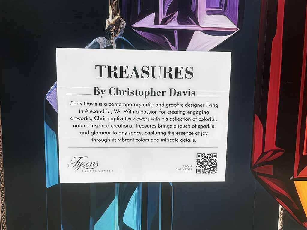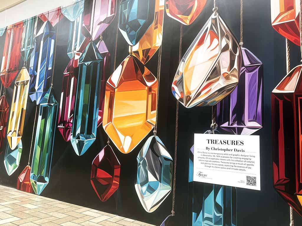 I collaborated with Tysons Corner Center in Virginia to produce a high-resolution vinyl print of my hand-drawn digital illustration titled "Treasures". The artwork is now installed at the mall, reflecting the studio’s commitment to creating beautiful and impactful visual experiences for public spaces.
