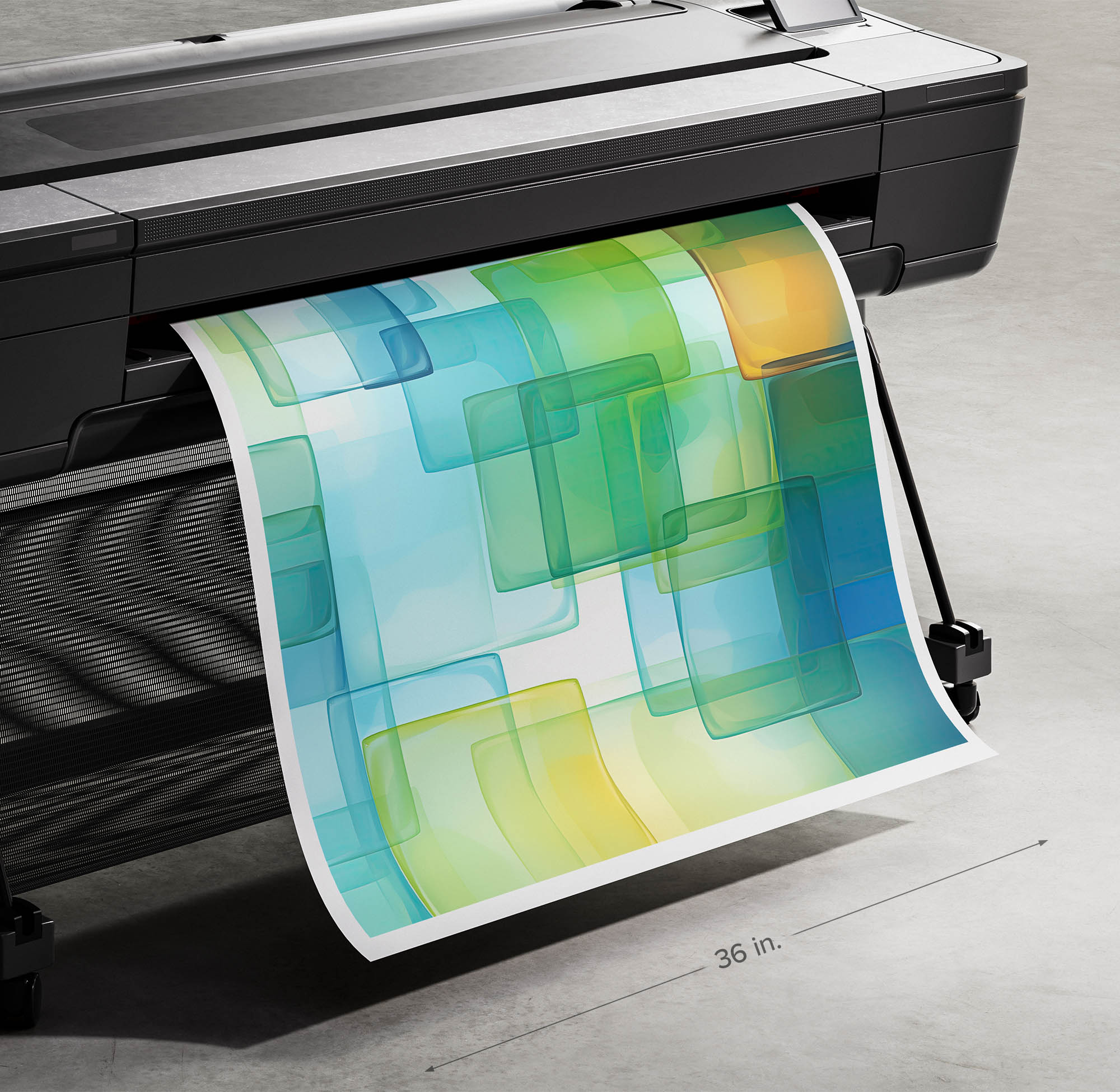 Floating grid of translucent aqua, lime, and yellow squares with soft gradients.